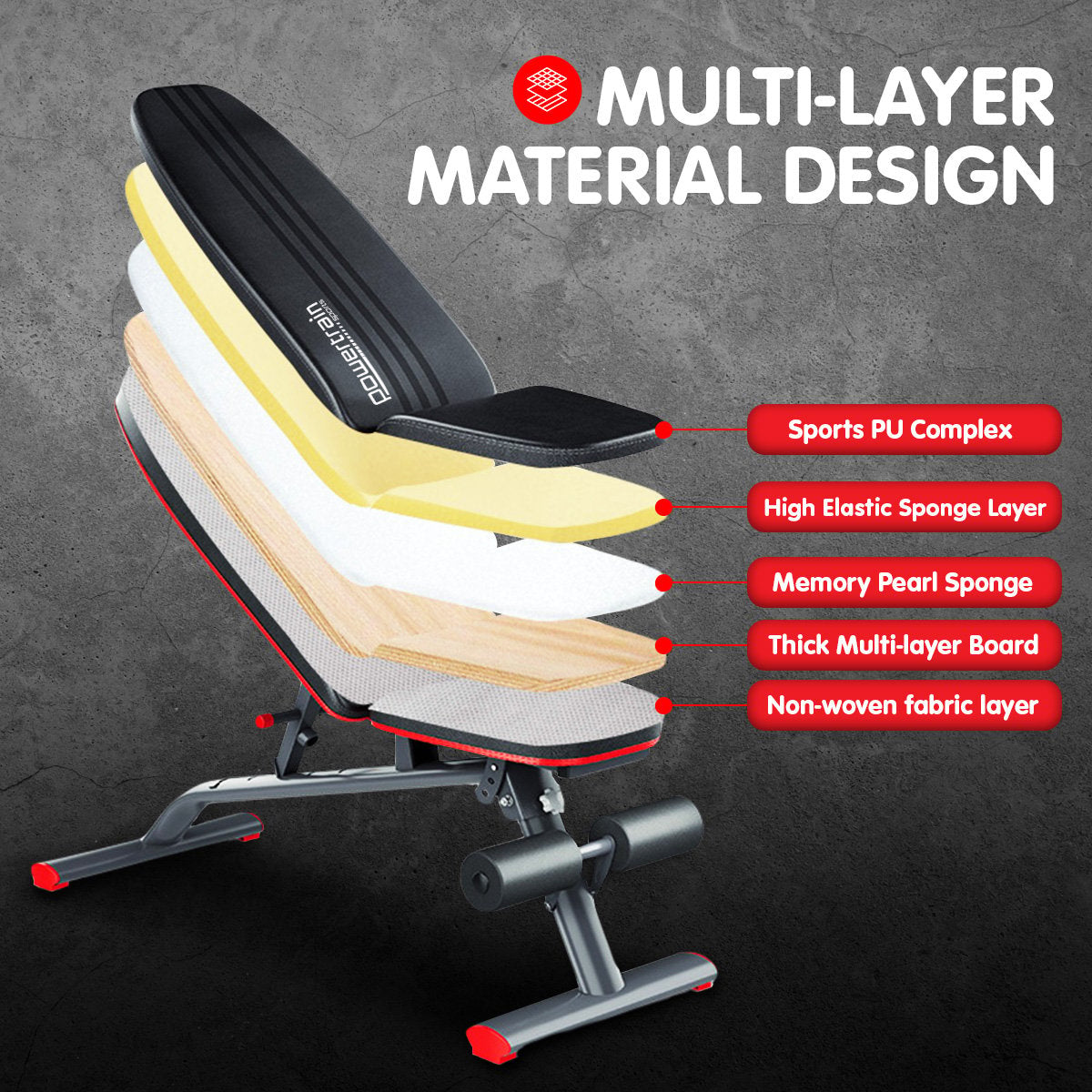 Powertrain Home Gym Bench Adjustable Flat Incline Decline FID 250KG Load